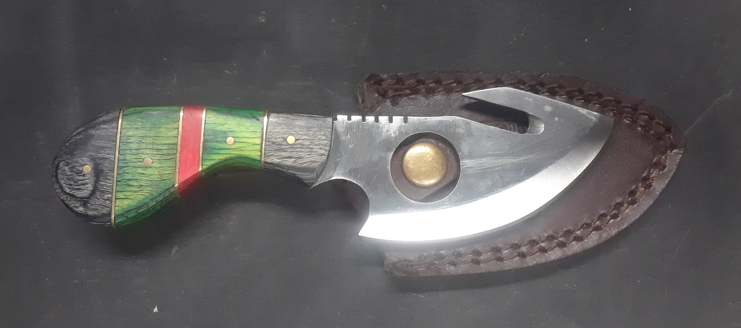 A Handcrafted Pakistan Guthook skinning made from 440 steel, and a pakkawood handle perfect for hunting, and fishing we include free shipping, and we currently only ship in the U.S.A!
