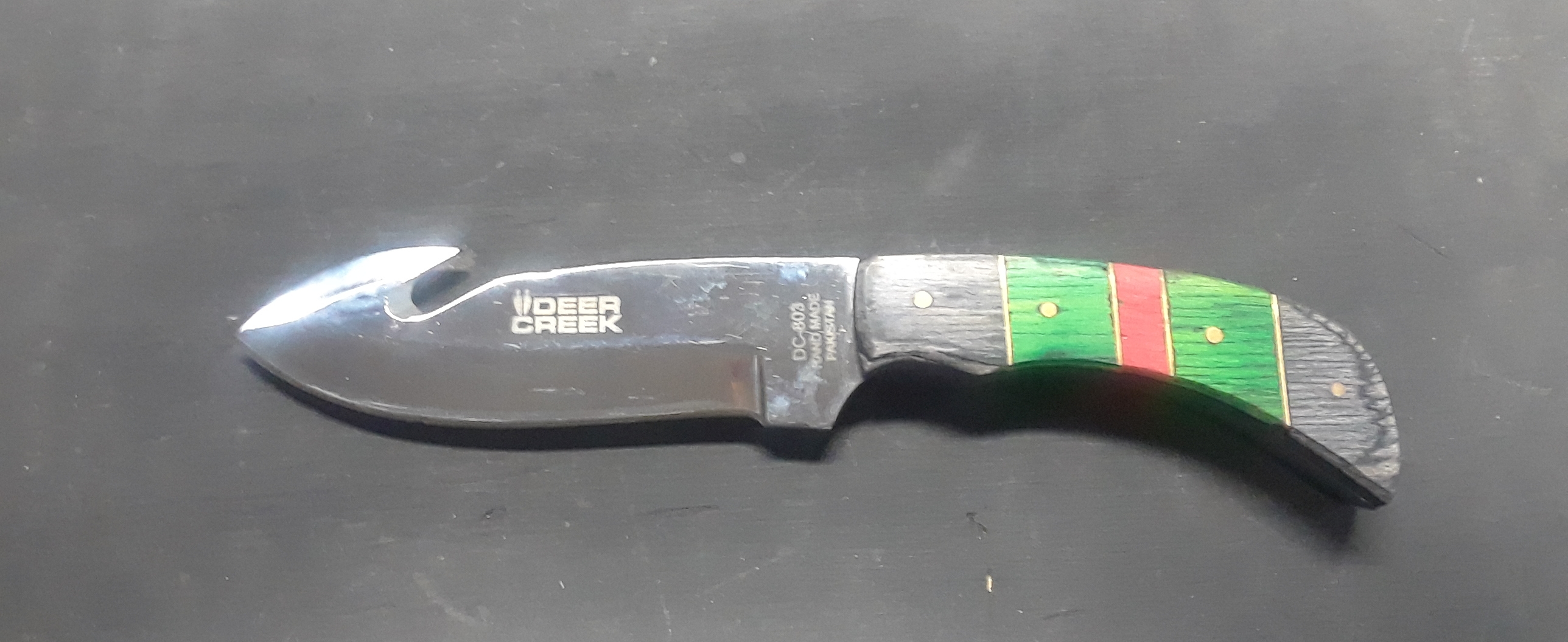 A Handmade deer creek Pakistan knife crafted from 440 stainless steel, and a green pakkawood handle this knife is a must for Hunter’s, and Enthusiasts alike! We include free shipping, and we currently only ship in the U.S.A!