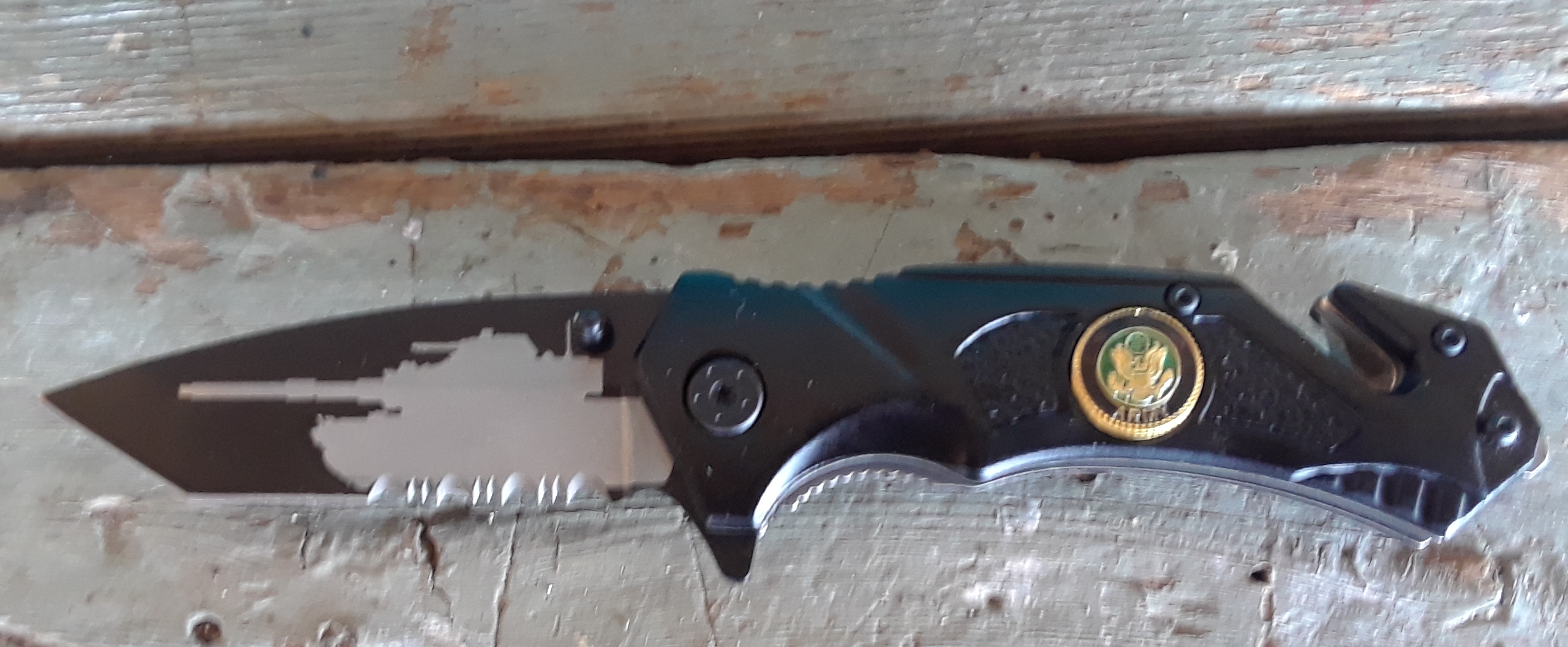 To show our appreciation for the Military we have the Army Pocket Knife, Embellished with an Army crest, and a Tank imprinted on the blade. We currently only ship in the U.S.A. And we include free shipping!