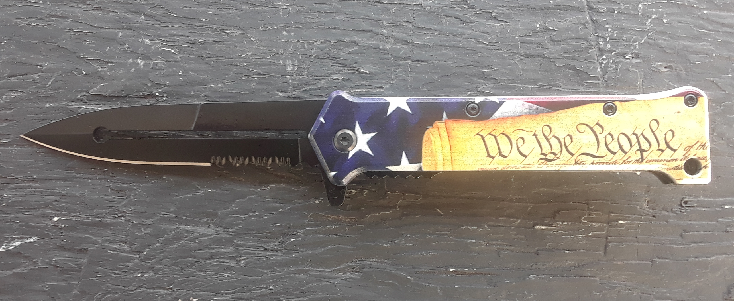 We the People! for Generations this Nation has stood as a pinnacle of strength, and goodwill. Show your support for the greatest nation on earth with a We The People Pocket Knife! We include free shipping, and we currently only ship in the U.S.A!
