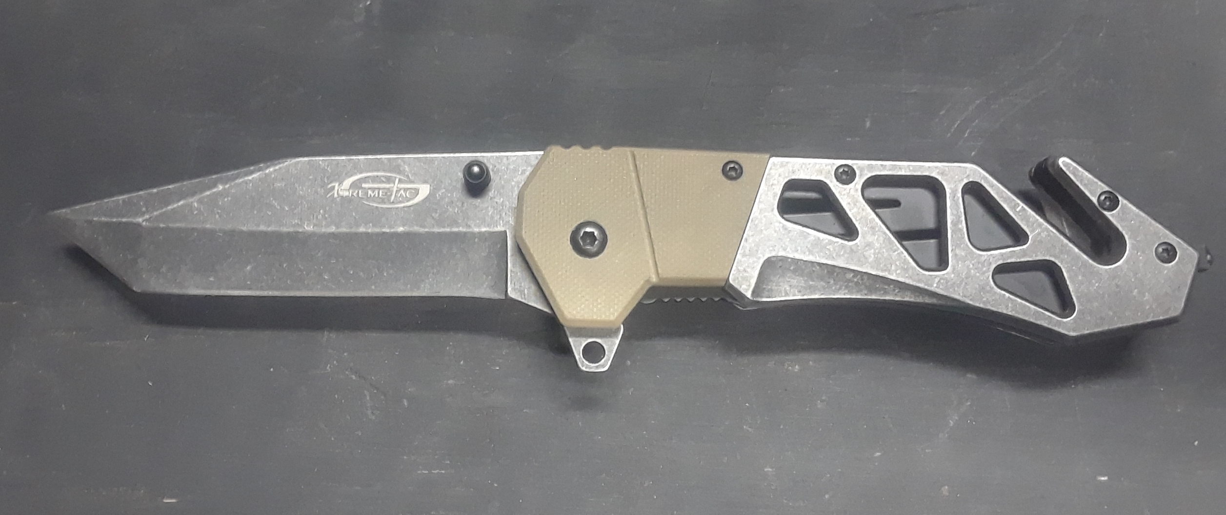 5″ G-10/Stone-Wash Metal Handle 3.5″ Stone-Wash Metal Blade Assist-Open Glass-Breaker Belt-Cutter Belt-Clip We include free shipping, and we currently only ship in the U.S.A